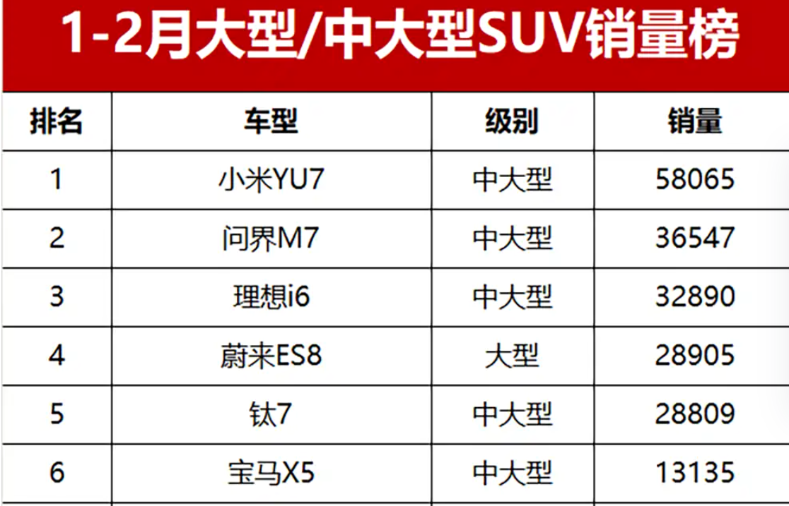 2026年车市,大型SUV正成为最“反常识”的增量赛道。乘联会数据显示,今年1-2月整体SUV零售销量同比下跌9.8%,中大型及大型SUV却逆势大涨90.9%,销量达11.1万辆,其中5款车型月均破万。